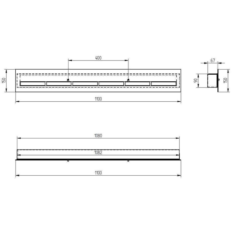 • Габаритные размеры (ШхВхГ): 1100 x 67 x 150 мм.