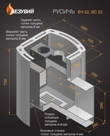 Основные характеристики печи-каменки Везувий СКИФ 22 ВС